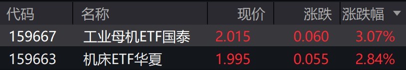 受盘面影响,工业母机、机床相关ETF涨约3%。