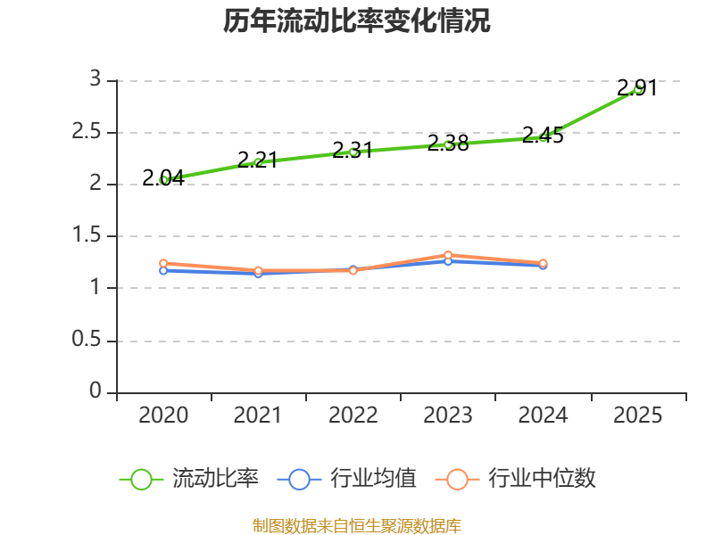 2025年,公司流动比率为2.91,速动比率为2.63。