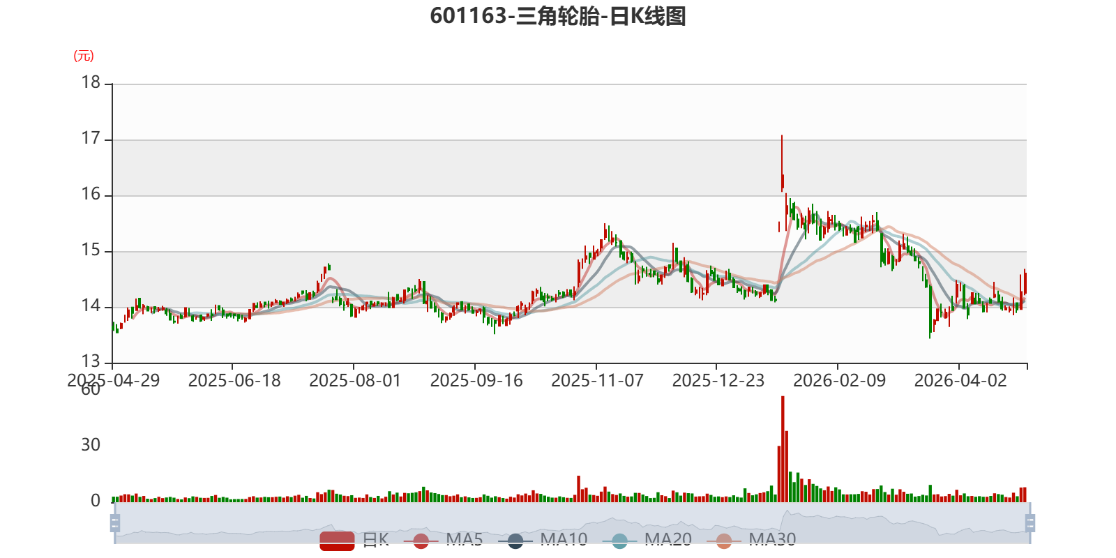 以4月28日收盘价计算,三角轮胎目前市盈率(TTM)约为12.66倍,市净率(LF)约0.84倍,市销率(TTM)约1.19倍。