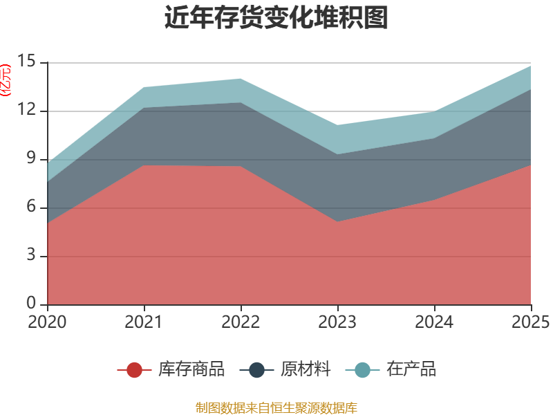 从存货变动来看,截至2025年末,公司存货账面价值为14.77亿元,占净资产的10.59%,较上年末增加2.84亿元。其中,存货跌价准备为1922.84万元,计提比例为1.28%。