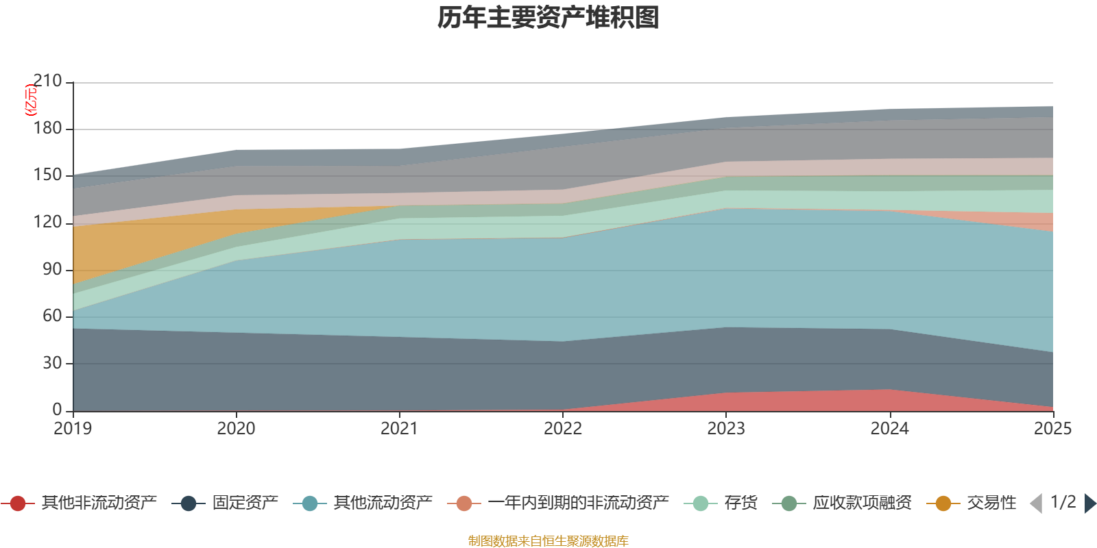 资产重大变化方面,截至2025年末,公司其他非流动资产较上年末减少81.49%,占公司总资产比重下降5.83个百分点;一年内到期的非流动资产较上年末增加1620.27%,占公司总资产比重上升5.74个百分点;固定资产较上年末减少9.14%,占公司总资产比重下降2个百分点;存货较上年末增加23.81%,占公司总资产比重上升1.4个百分点。