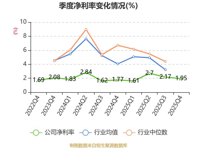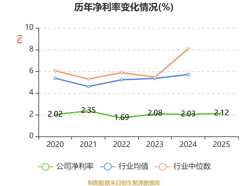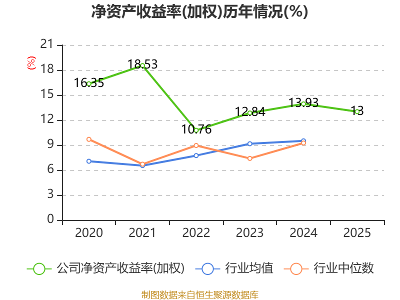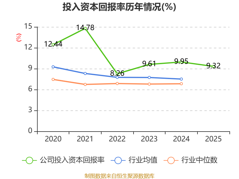 数据显示,2025年公司加权平均净资产收益率为13%,较上年同期下降0.93个百分点。公司2025年投入资本回报率为9.32%,较上年同期下降0.63个百分点。