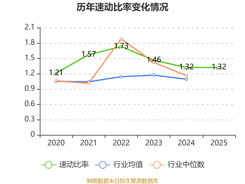 2025年,公司流动比率为1.62,速动比率为1.32。