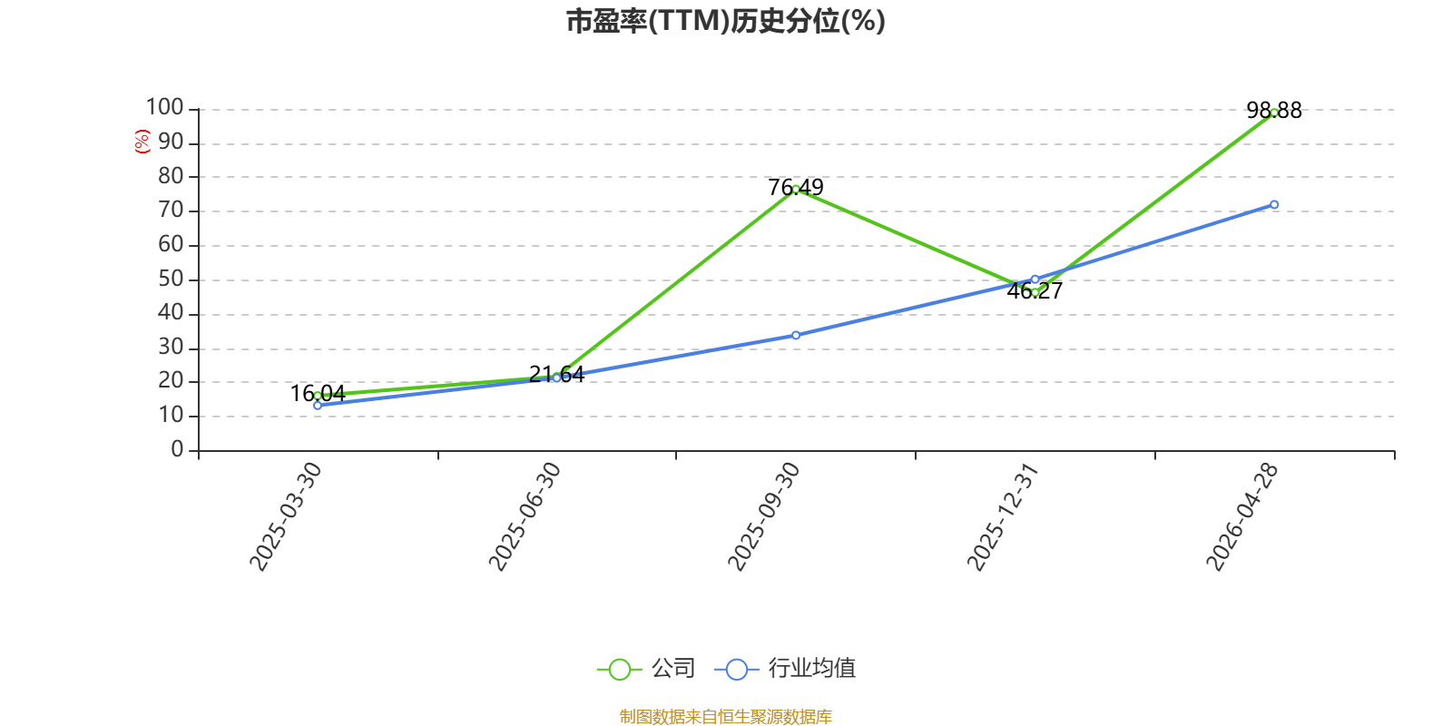 市盈率、市净率为负时,不显示当期分位数,会导致折线图中断。