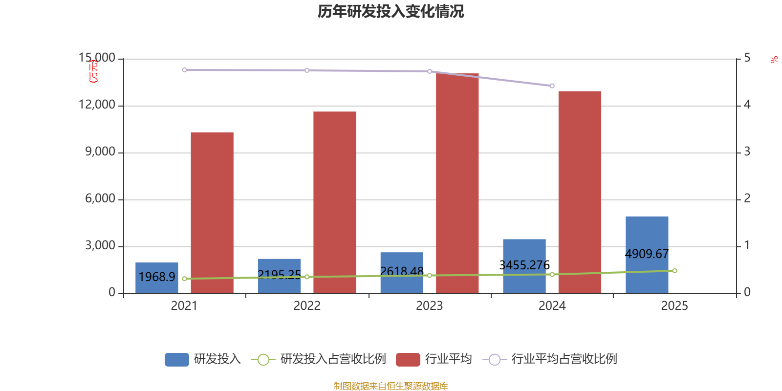 2025年全年,公司研发投入金额为4909.67万元,同比增长42.09%;研发投入占营业收入比例为0.48%,相比上年同期上升0.08个百分点。