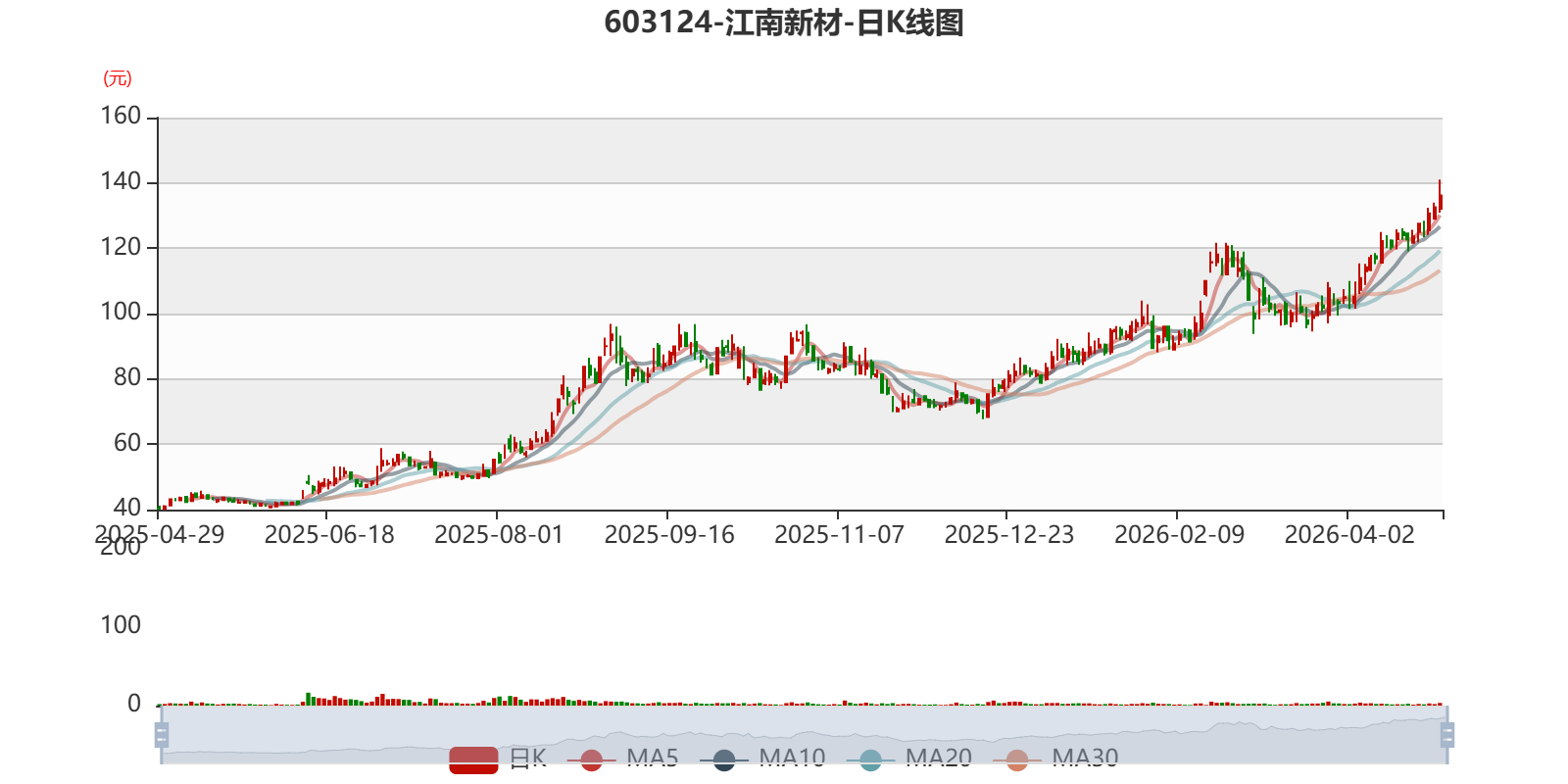 以4月28日收盘价计算,江南新材目前市盈率(TTM)约为90.55倍,市净率(LF)约10.72倍,市销率(TTM)约1.92倍。