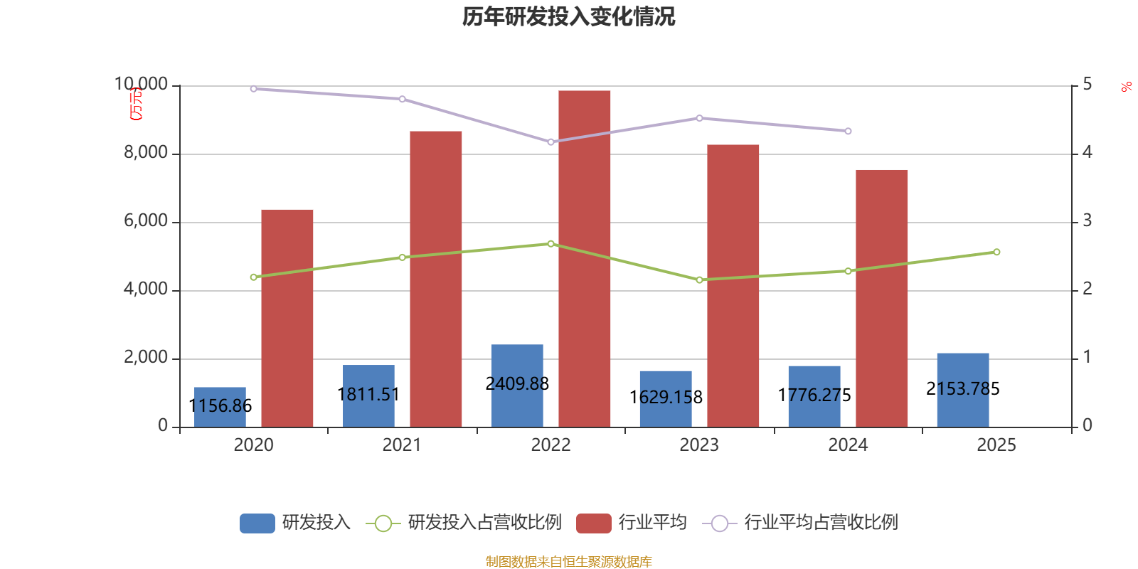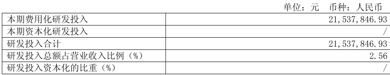 2025年全年,公司研发投入金额为2153.78万元,同比增长21.25%;研发投入占营业收入比例为2.56%,相比上年同期上升0.28个百分点。