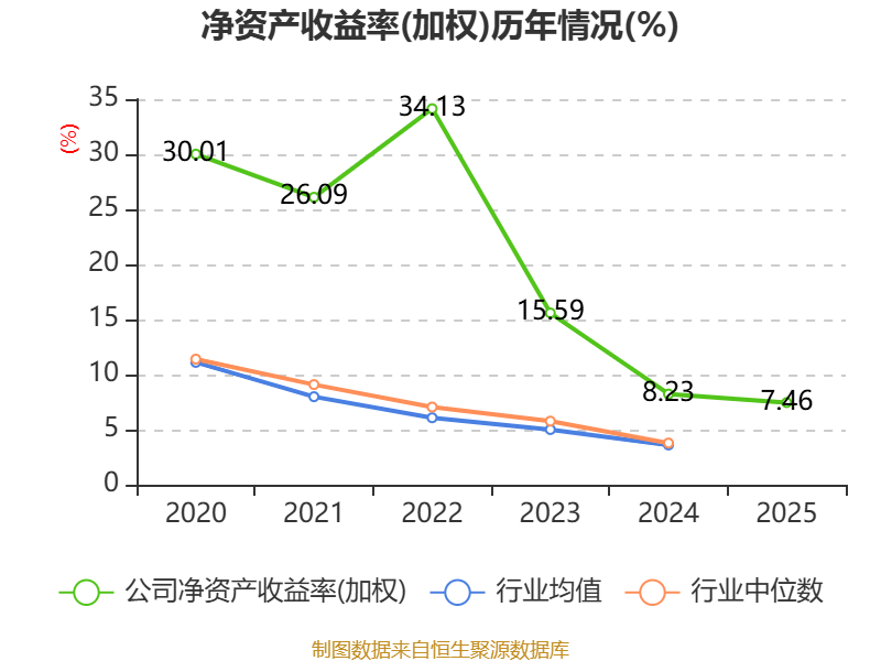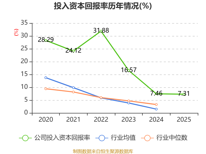 数据显示,2025年公司加权平均净资产收益率为7.46%,较上年同期下降0.77个百分点。公司2025年投入资本回报率为7.31%,较上年同期下降0.15个百分点。