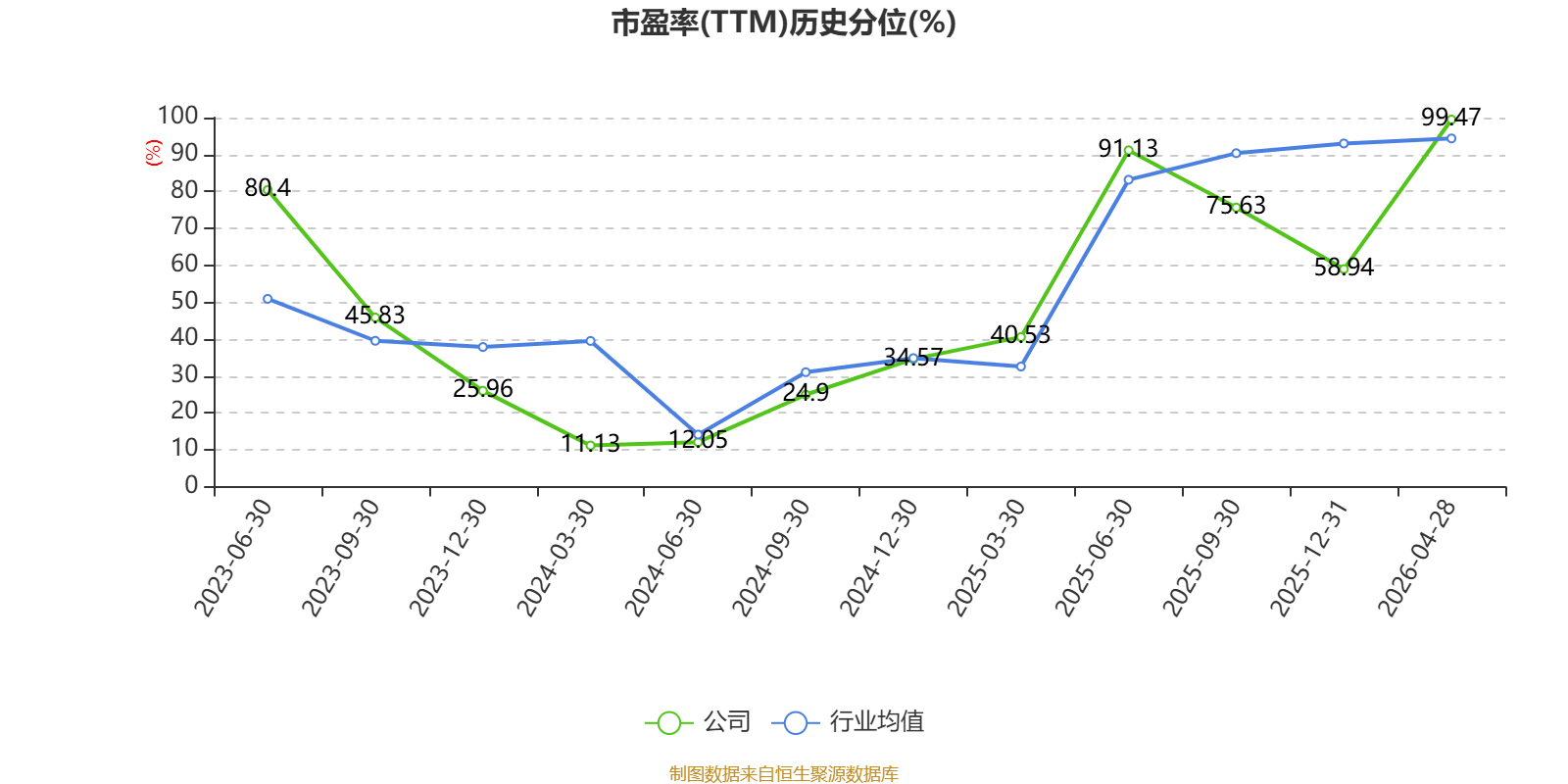 市盈率、市净率为负时,不显示当期分位数,会导致折线图中断。