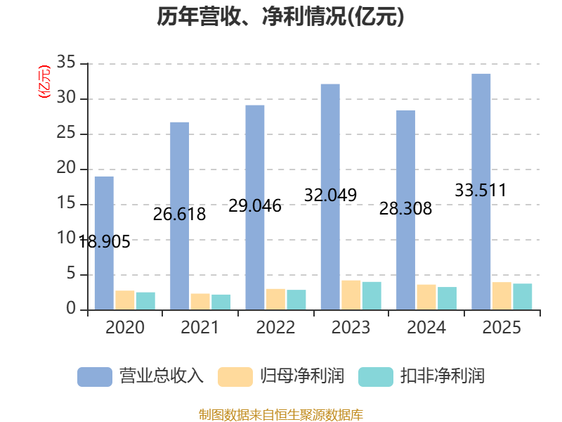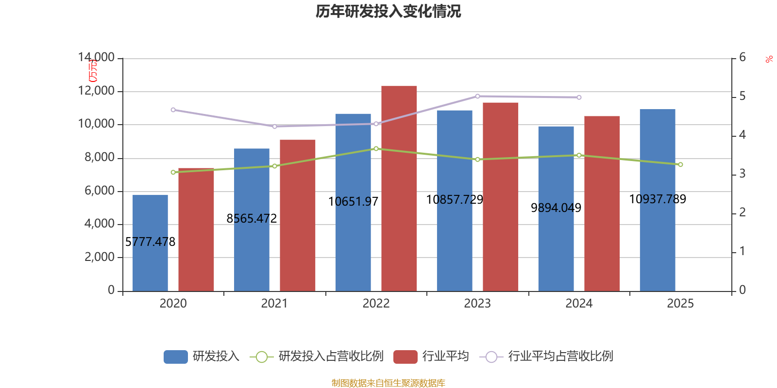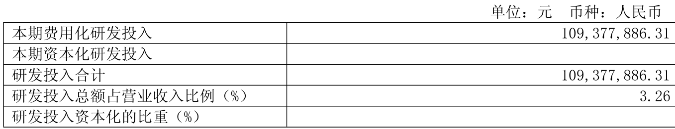 2025年全年,公司研发投入金额为1.09亿元,同比增长10.55%;研发投入占营业收入比例为3.26%,相比上年同期下降0.24个百分点。