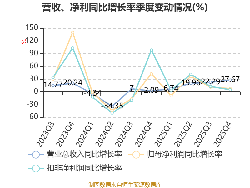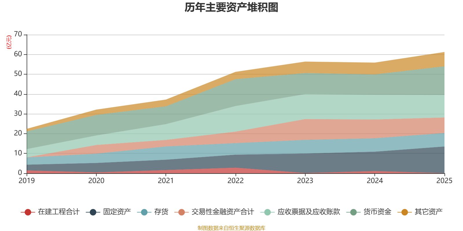 资产重大变化方面,截至2025年末,公司货币资金较上年末增加40.5%,占公司总资产比重上升5.2个百分点;固定资产较上年末增加37.47%,占公司总资产比重上升4.45个百分点;交易性金融资产合计较上年末减少17.13%,占公司总资产比重下降4.14个百分点;应收票据及应收账款较上年末减少8.79%,占公司总资产比重下降3.75个百分点。