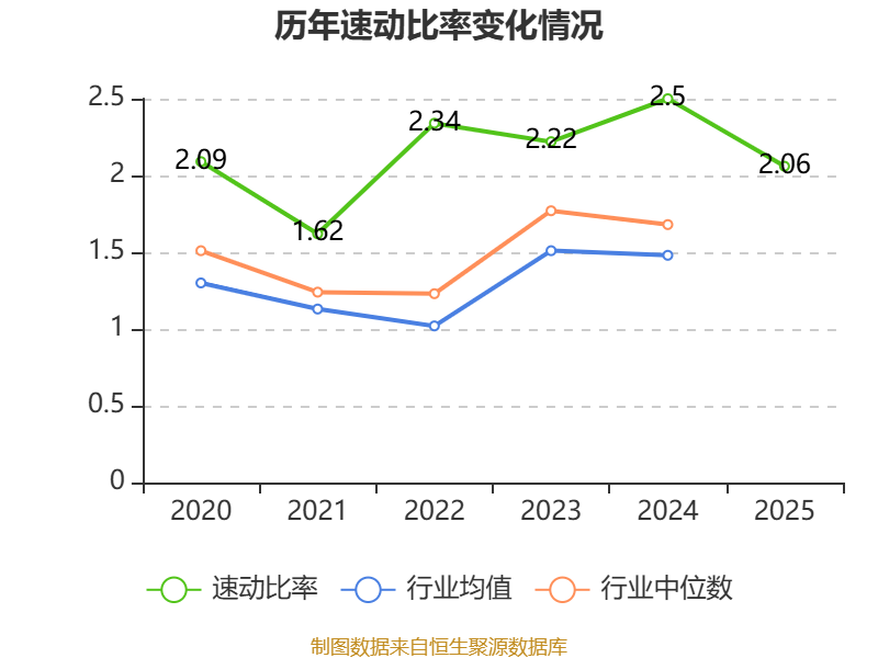 2025年,公司流动比率为2.45,速动比率为2.06。