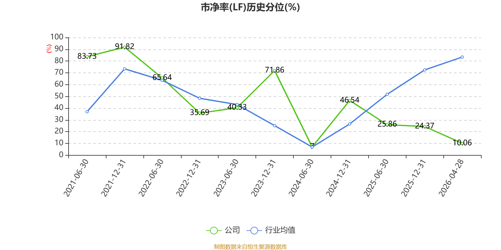 市盈率、市净率为负时,不显示当期分位数,会导致折线图中断。