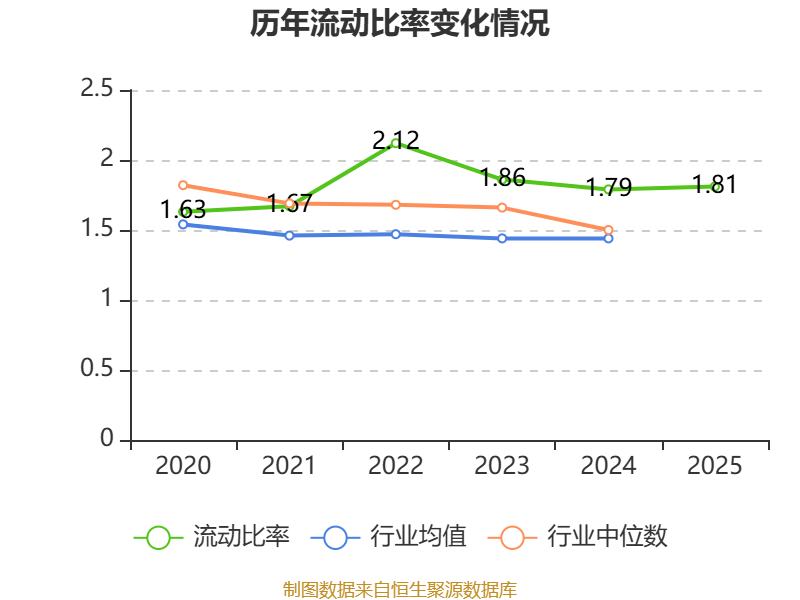 2025年,公司流动比率为1.81,速动比率为1.34。
