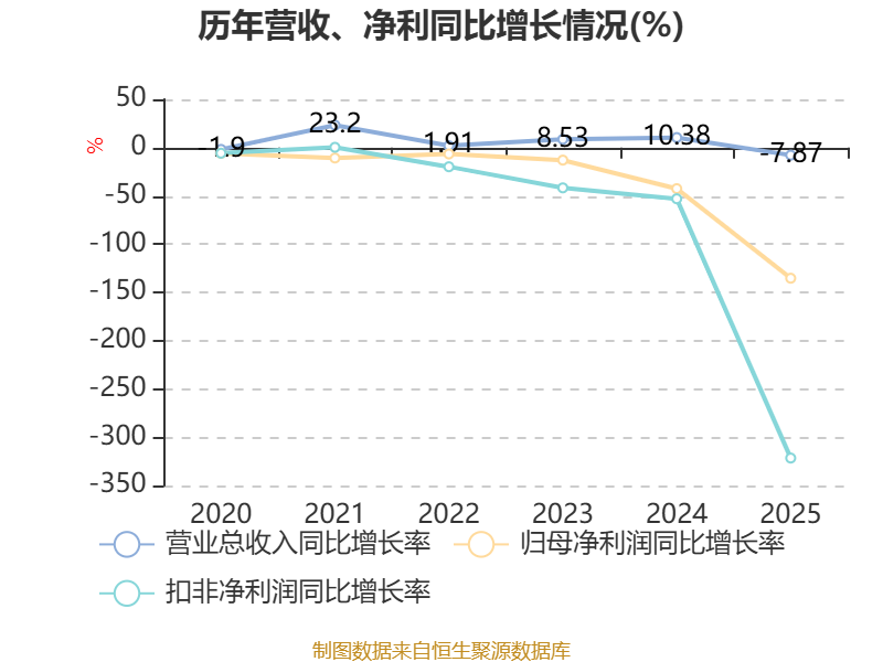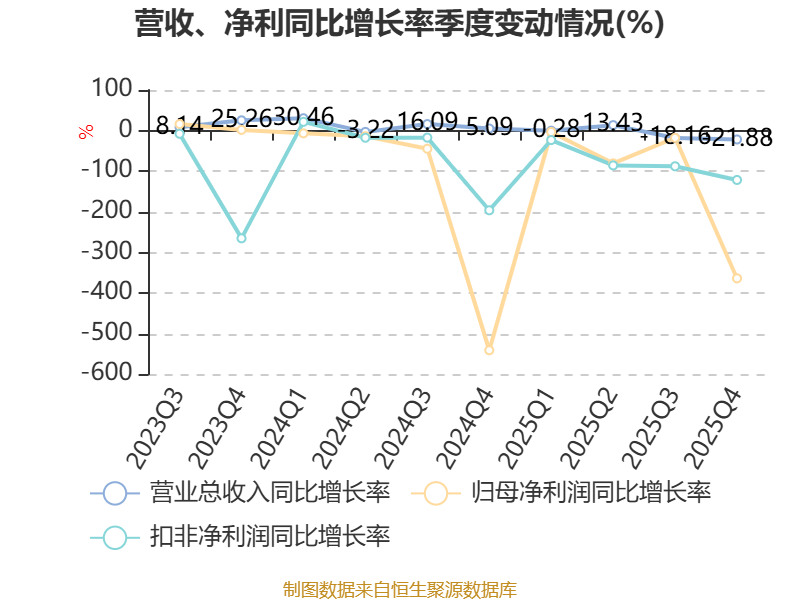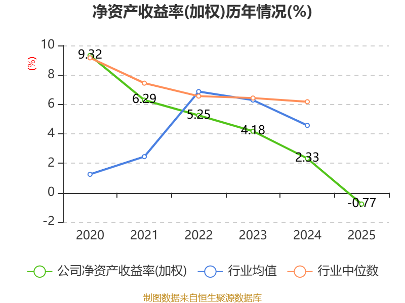 数据显示,2025年公司加权平均净资产收益率为-0.77%,较上年同期下降3.1个百分点。公司2025年投入资本回报率为0.95%,较上年同期下降2.38个百分点。