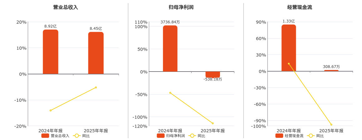 泰永长征(002927.SZ)2025年净利润为-538.18万元,由盈转亏