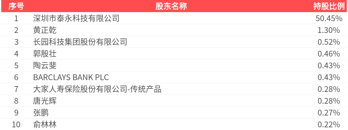 公司股东户数为3.29万户,前十大股东持股数量为1.22亿股,占总股本比例为54.63%,前十大股东持股情况如下: