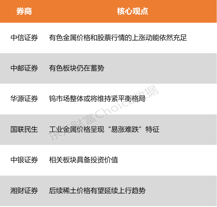 中信证券:有色金属价格和股票行情的上涨动能依然充足