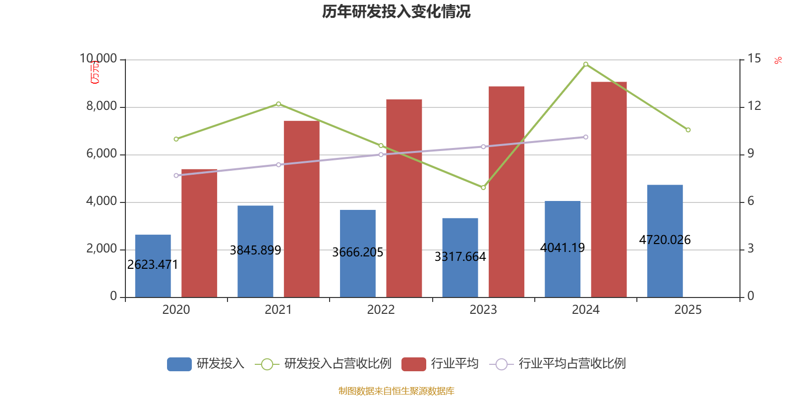 2025年全年,公司研发投入金额为4720.03万元,同比增长16.8%;研发投入占营业收入比例为10.55%,相比上年同期下降4.15个百分点。