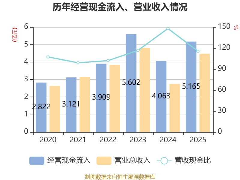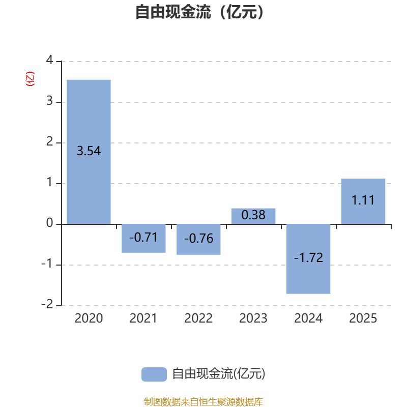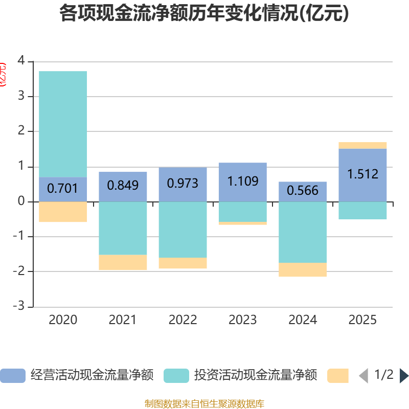 截至2025年,公司经营活动现金流净额为1.51亿元,同比增长167.34%;筹资活动现金流净额1844.75万元,同比增加5796.16万元;投资活动现金流净额-5064.25万元,上年同期为-1.75亿元。