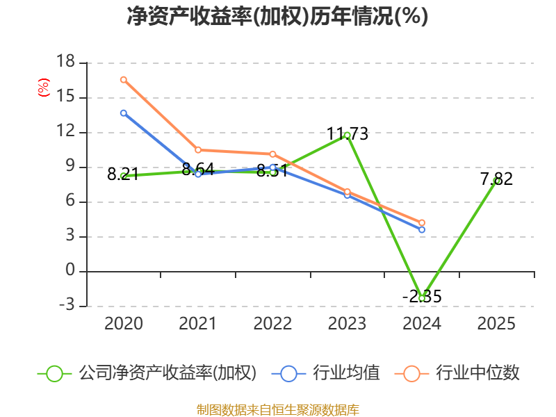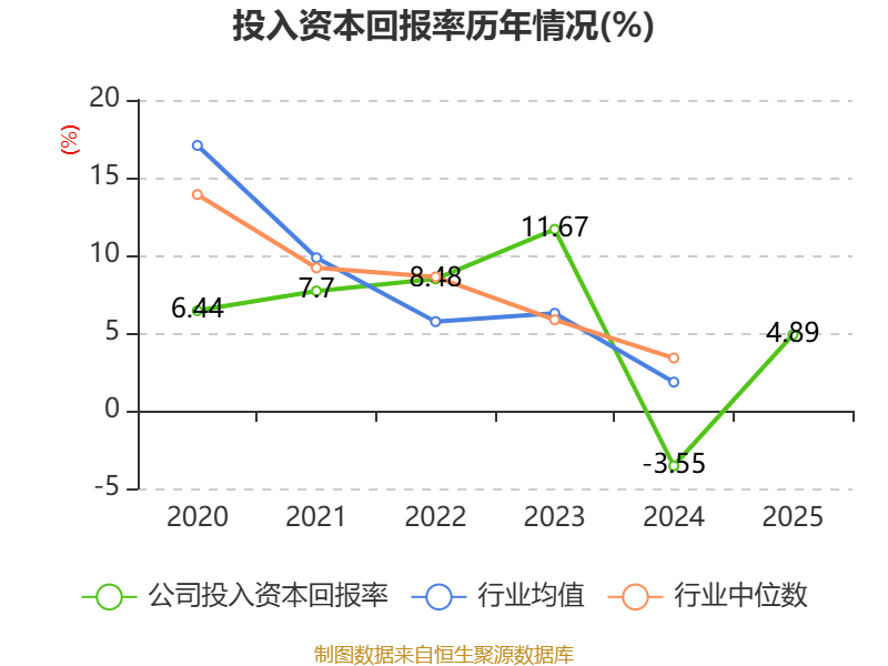 数据显示,2025年公司加权平均净资产收益率为7.82%,较上年同期上升10.17个百分点。公司2025年投入资本回报率为4.89%,较上年同期上升8.44个百分点。