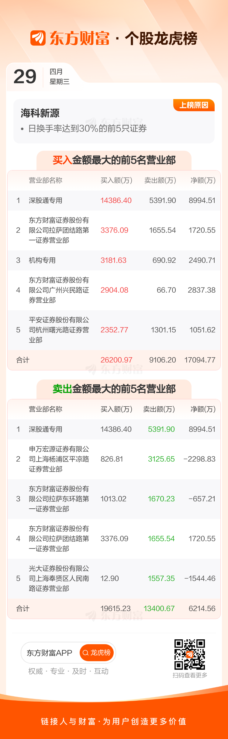 海科新源(301292)龙虎榜数据(04-29)