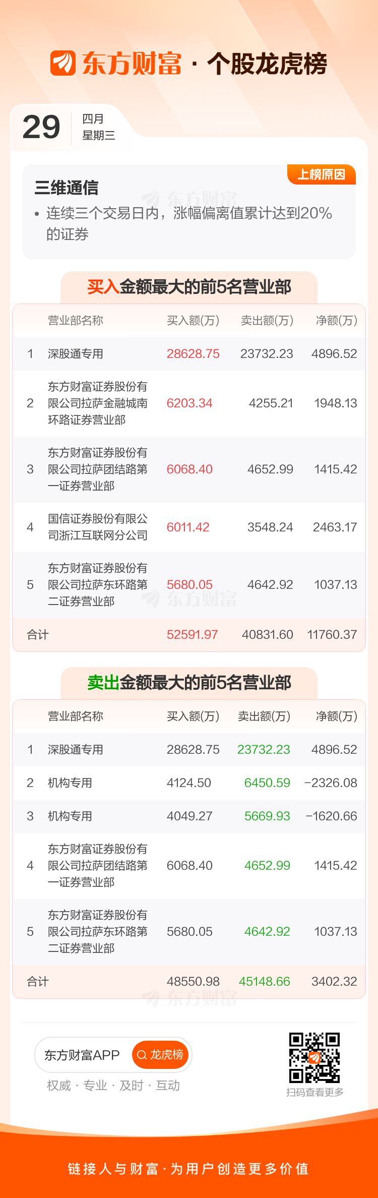 三维通信(002115)龙虎榜数据(04-29)