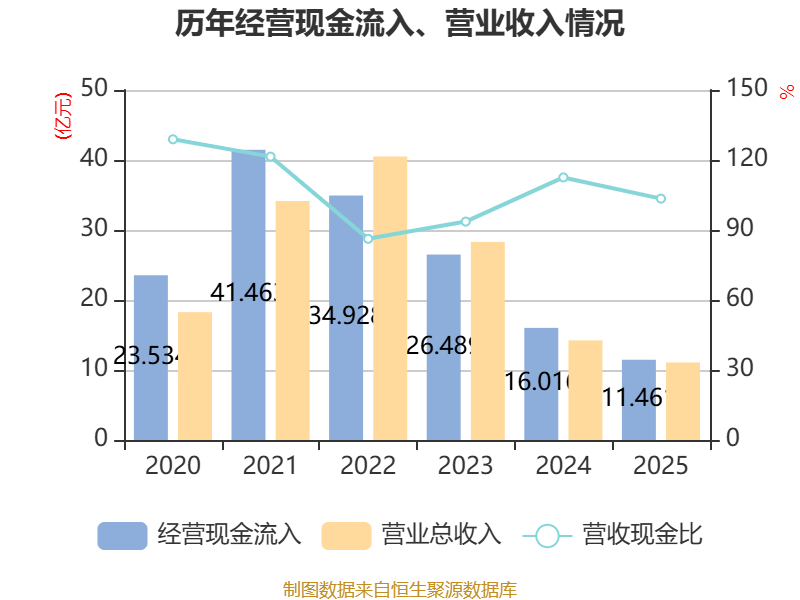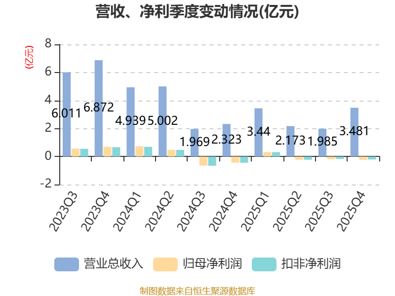 截至2025年,公司经营活动现金流净额为-1.72亿元,同比增加1.89亿元;筹资活动现金流净额-1.95亿元,同比增加1.32亿元;投资活动现金流净额-2.27亿元,上年同期为-4.23亿元。