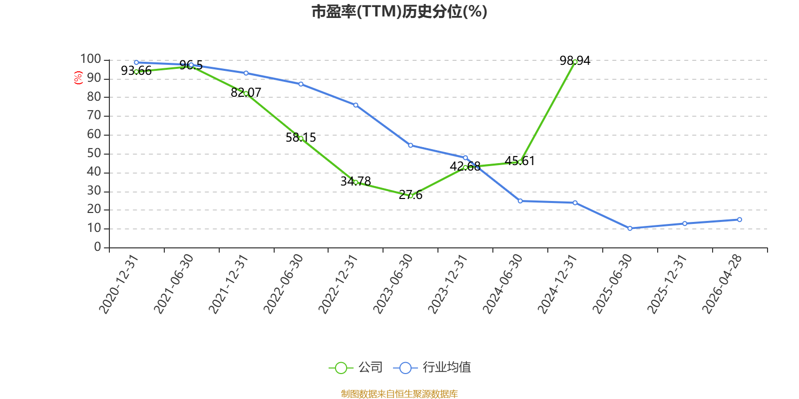 市盈率、市净率为负时,不显示当期分位数,会导致折线图中断。