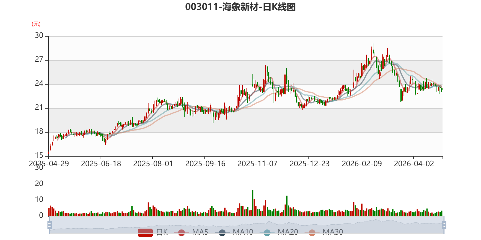 以4月28日收盘价计算,海象新材目前市盈率(TTM)约为24.03倍,市净率(LF)约1.7倍,市销率(TTM)约1.98倍。