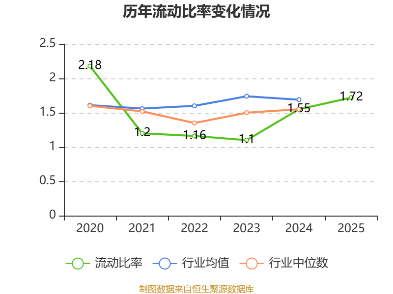 2025年,公司流动比率为1.72,速动比率为1.29。