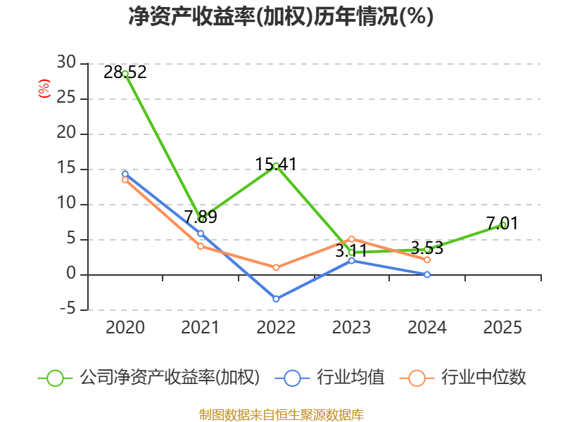 数据显示,2025年公司加权平均净资产收益率为7.01%,较上年同期上升3.48个百分点。公司2025年投入资本回报率为5.4%,较上年同期上升2.32个百分点。