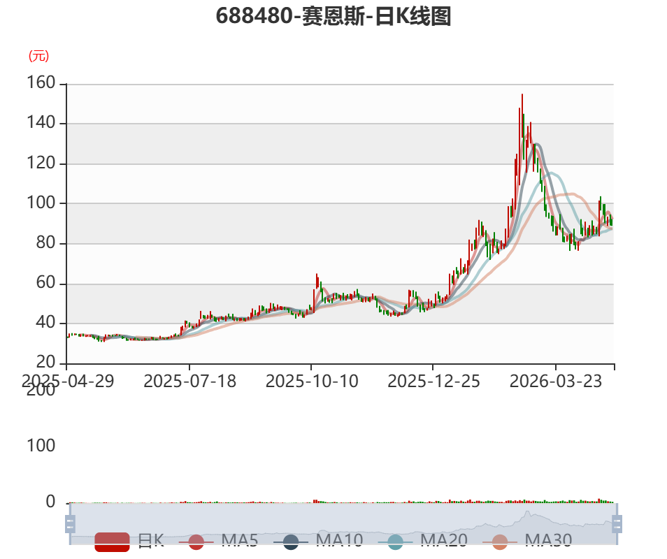以4月28日收盘价计算,赛恩斯目前市盈率(TTM)约为80.47倍,市净率(LF)约7.45倍,市销率(TTM)约6.94倍。