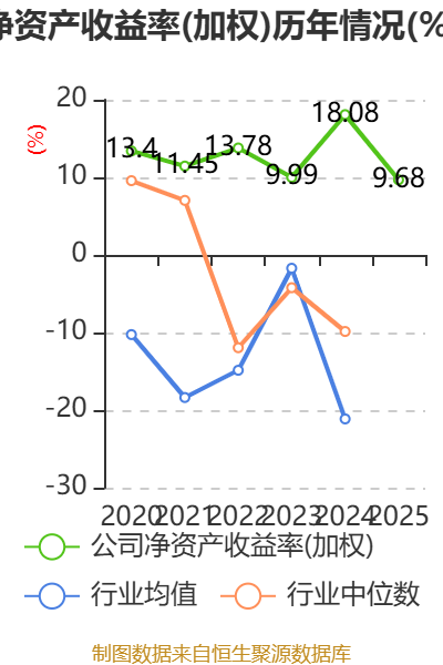 数据显示,2025年公司加权平均净资产收益率为9.68%,较上年同期下降8.4个百分点。公司2025年投入资本回报率为9.02%,较上年同期下降8.07个百分点。