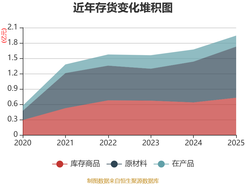 从存货变动来看,截至2025年末,公司存货账面价值为1.94亿元,占净资产的12.95%,较上年末增加2716.73万元。其中,存货跌价准备为1523.98万元,计提比例为7.28%。