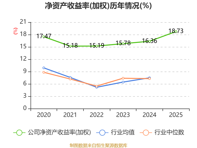 数据显示,2025年公司加权平均净资产收益率为18.73%,较上年同期上升2.37个百分点。公司2025年投入资本回报率为17.83%,较上年同期上升2.57个百分点。
