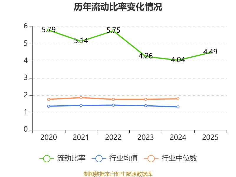 2025年,公司流动比率为4.49,速动比率为3.57。