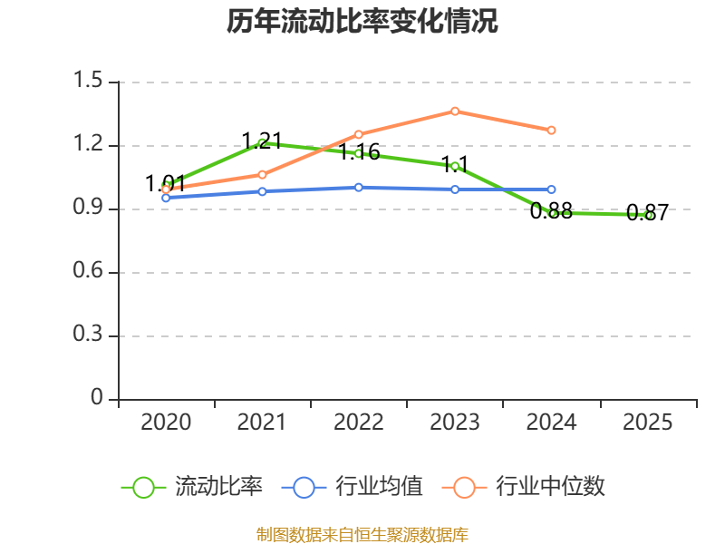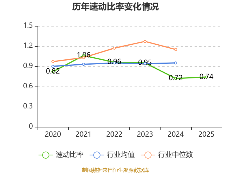 2025年,公司流动比率为0.87,速动比率为0.74。
