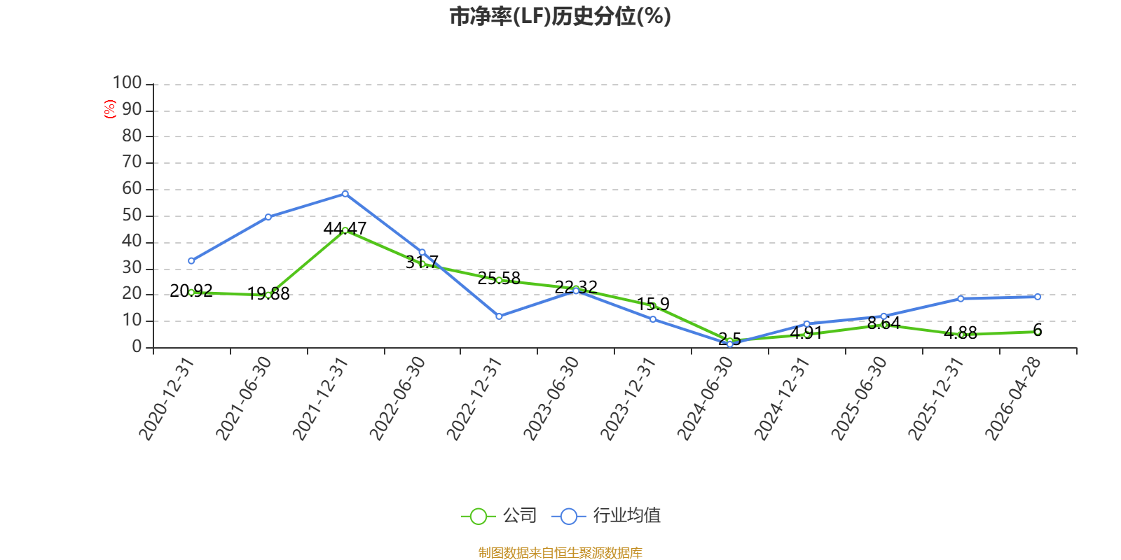 市盈率、市净率为负时,不显示当期分位数,会导致折线图中断。