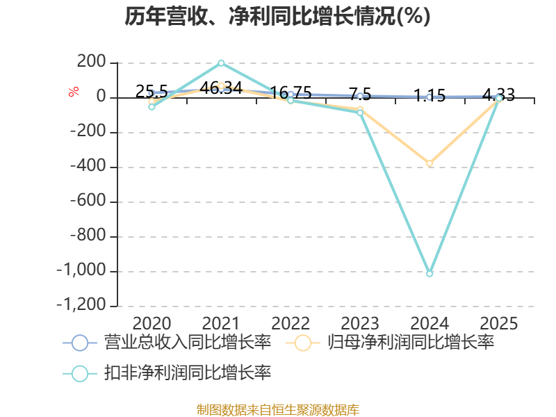 数据显示,2025年公司加权平均净资产收益率为-7.36%,较上年同期下降1.29个百分点。公司2025年投入资本回报率为-0.08%,较上年同期下降1.14个百分点。