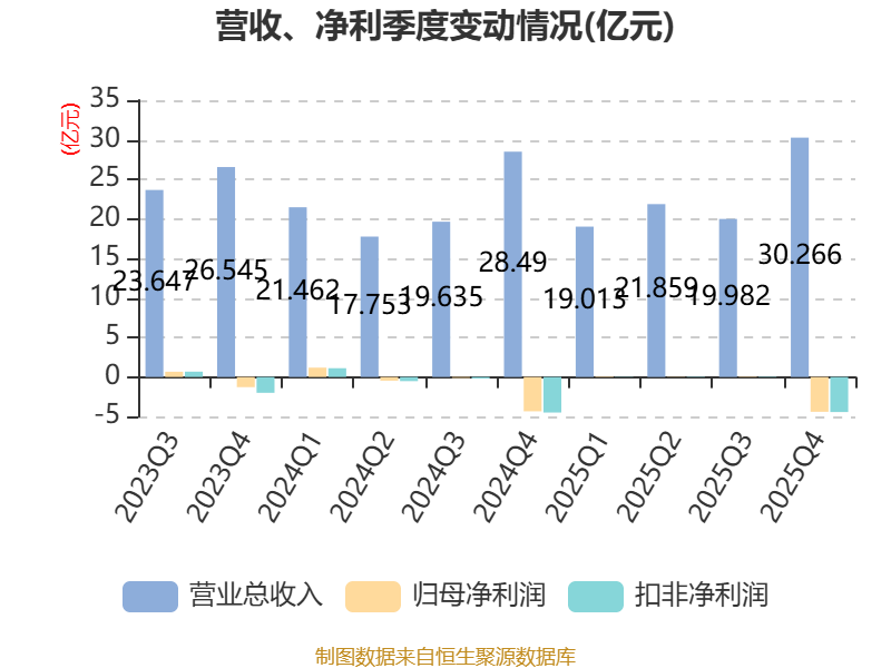 中证智能财讯清新环境(002573)4月29日披露2025年年度报告。2025年,公司实现营业总收入91.12亿元,同比增长4.33%;归母净利润亏损4.21亿元,上年同期亏损3.75亿元;扣非净利润亏损4.35亿元,上年同期亏损4.11亿元;经营活动产生的现金流量净额为15.05亿元,同比增长0.88%;报告期内,清新环境基本每股收益为-0.2974元,加权平均净资产收益率为-7.36%。
