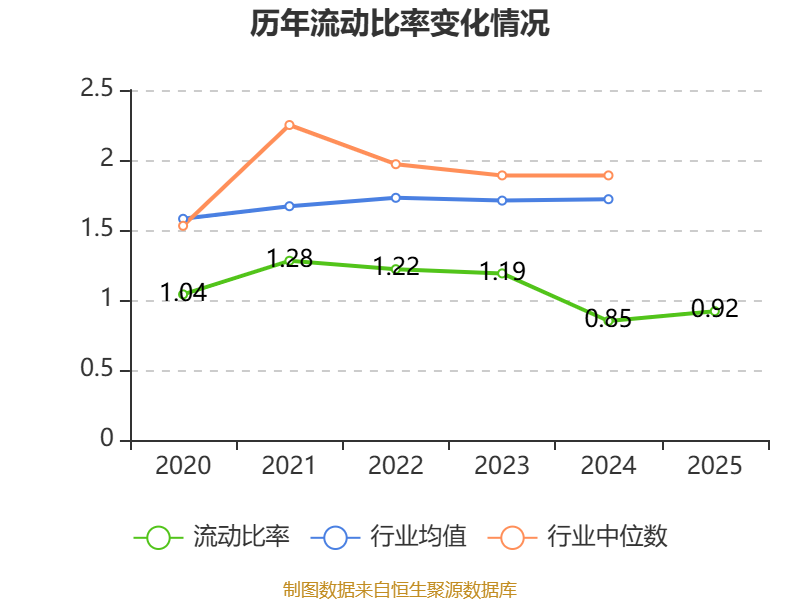 2025年,公司流动比率为0.92,速动比率为0.77。