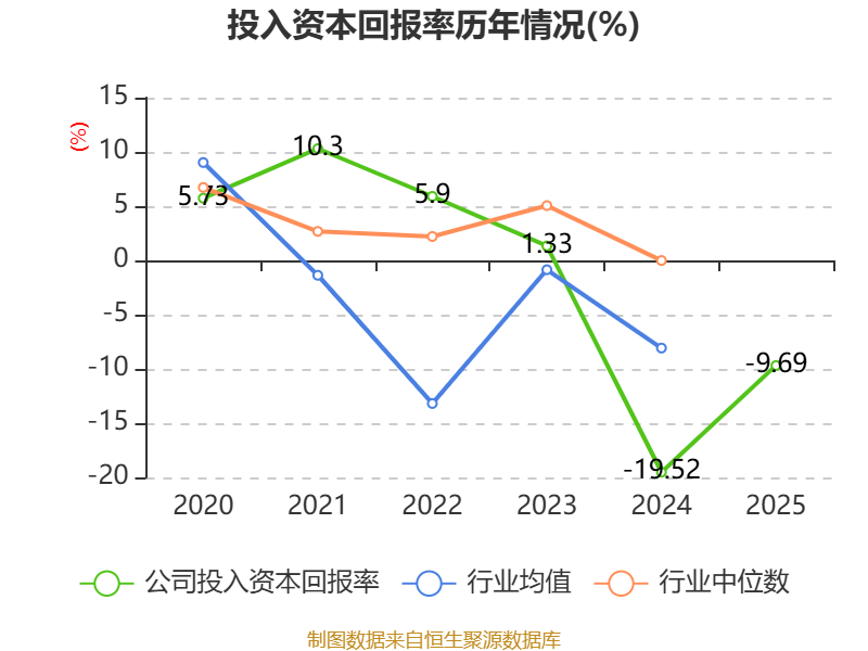 数据显示,2025年公司加权平均净资产收益率为-19.18%,较上年同期上升7.7个百分点。公司2025年投入资本回报率为-9.69%,较上年同期上升9.83个百分点。