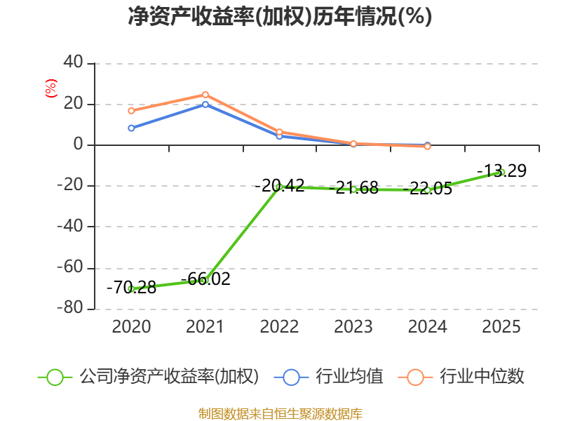 数据显示,2025年公司加权平均净资产收益率为-13.29%,较上年同期上升8.76个百分点。公司2025年投入资本回报率为-12.69%,较上年同期上升6个百分点。