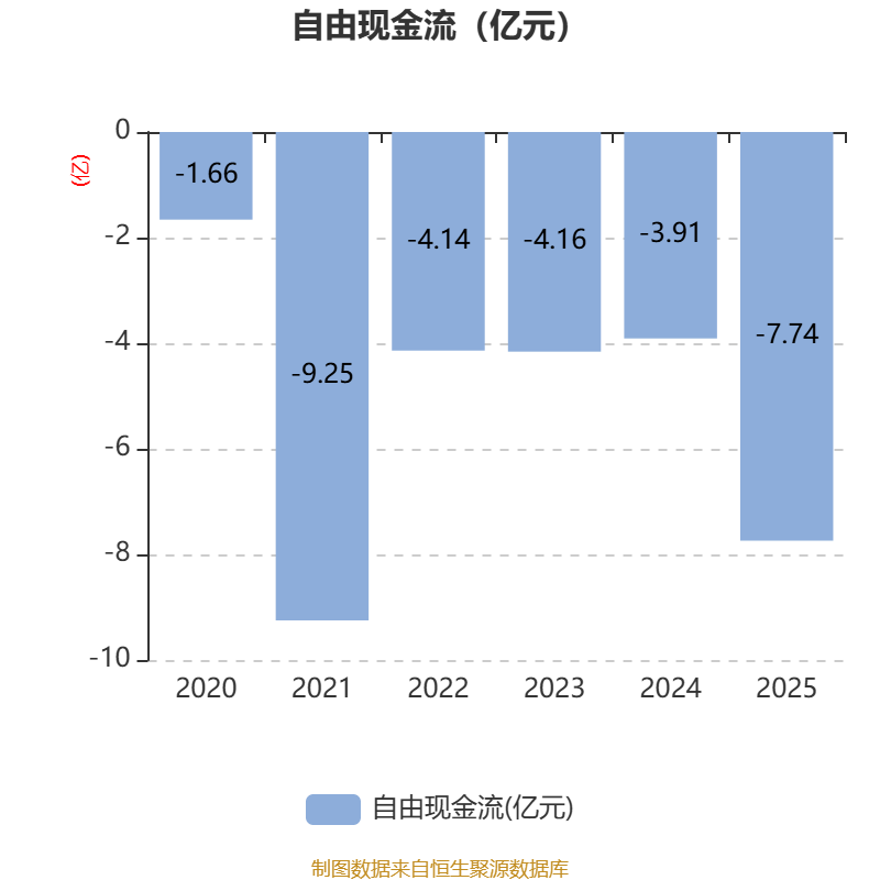 截至2025年,公司经营活动现金流净额为-3.21亿元,同比减少2578.28万元;筹资活动现金流净额-2072.13万元,同比减少1.54亿元;投资活动现金流净额-2709.4万元,上年同期为9101.56万元。
