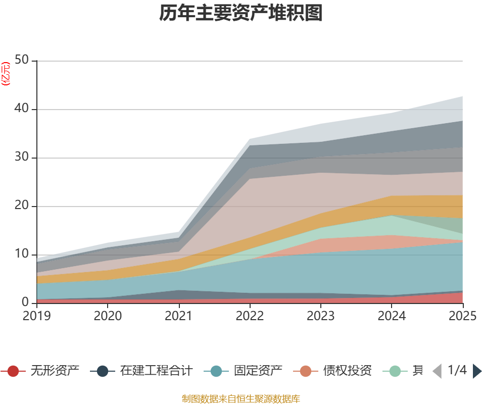 资产重大变化方面,截至2025年末,公司一年内到期的非流动资产较上年末增加2018.45%,占公司总资产比重上升7.11个百分点;其他流动资产较上年末减少66.58%,占公司总资产比重下降7.06个百分点;债权投资较上年末减少85.53%,占公司总资产比重下降6.24个百分点;无形资产较上年末增加79.53%,占公司总资产比重上升1.97个百分点。