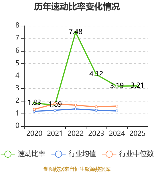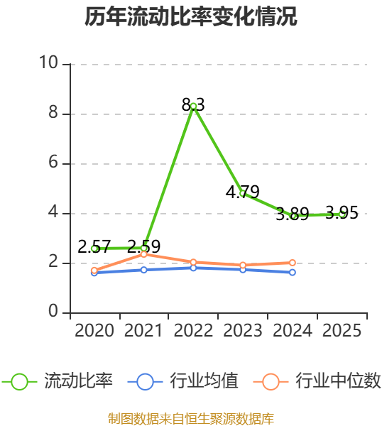 2025年,公司流动比率为3.95,速动比率为3.21。