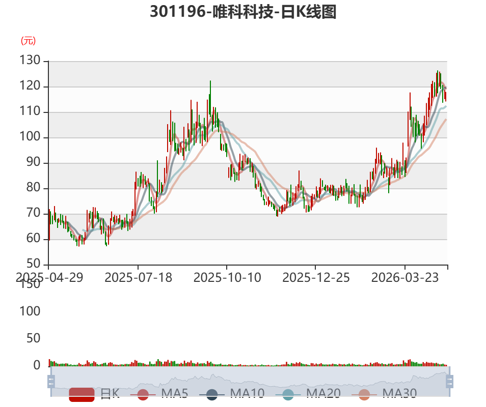 以4月28日收盘价计算,唯科科技目前市盈率(TTM)约为56.82倍,市净率(LF)约4.36倍,市销率(TTM)约6.62倍。