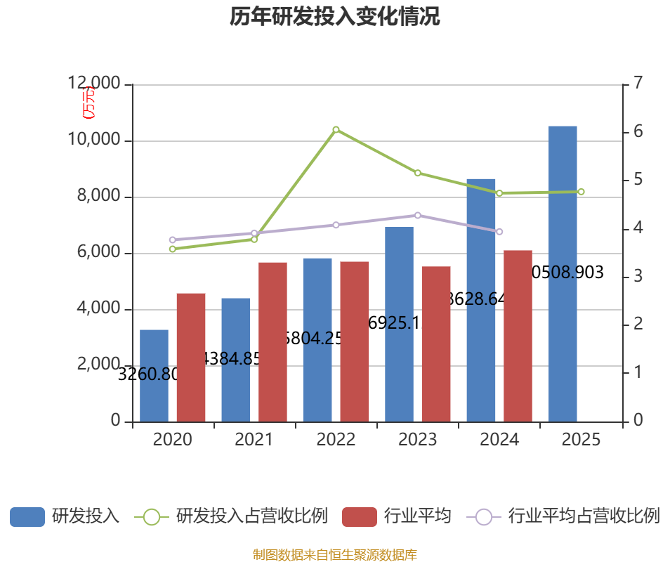 2025年全年,公司研发投入金额为1.05亿元,同比增长21.79%;研发投入占营业收入比例为4.77%,相比上年同期上升0.03个百分点。此外,公司全年研发投入资本化率为0%。
