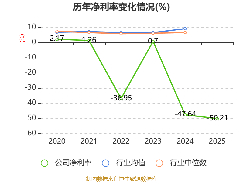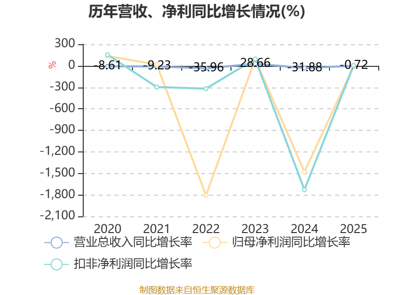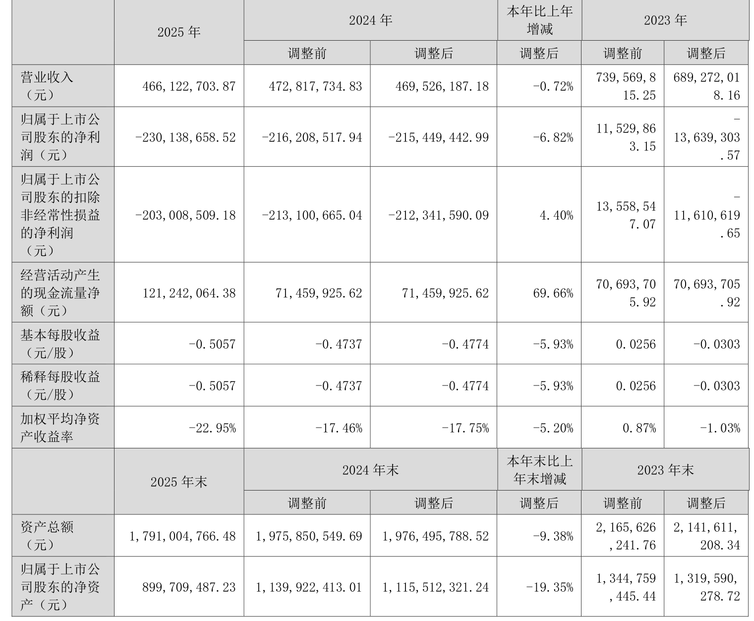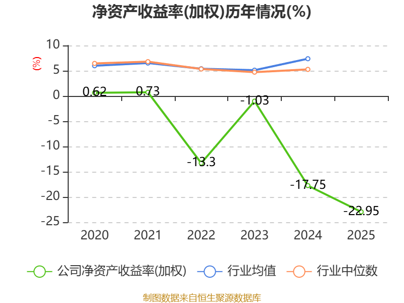 数据显示,2025年公司加权平均净资产收益率为-22.95%,较上年同期下降5.2个百分点。公司2025年投入资本回报率为-16.02%,较上年同期下降4.11个百分点。